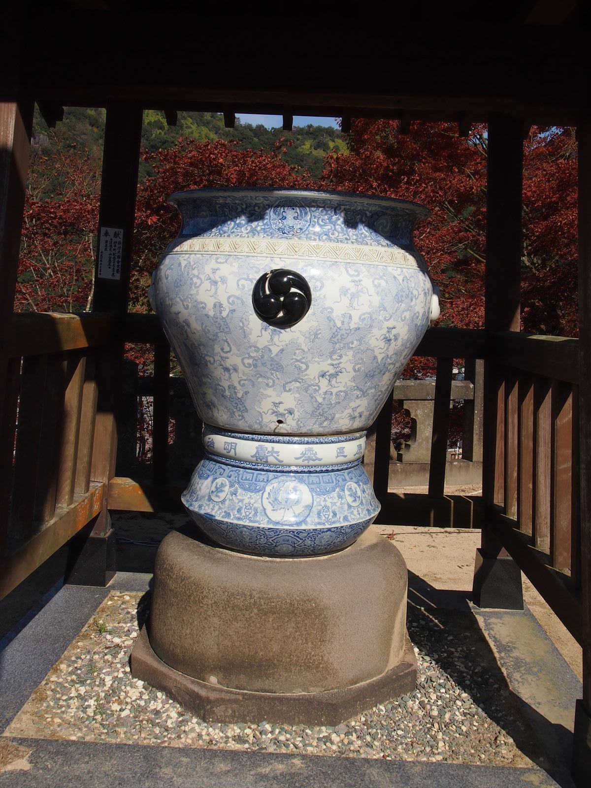磁器製の鳥居、狛犬、大水瓶、欄干などなど有田焼の陶工たちが競って寄進した作品たちは見ているだけで圧巻です。